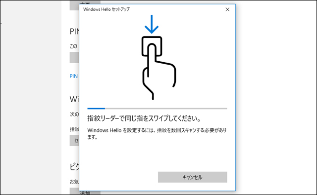 Windows 10には「Windows Hello」と呼ばれる認証機能が用意されており、 予め設定しておくことで指紋を利用する事が可能です。