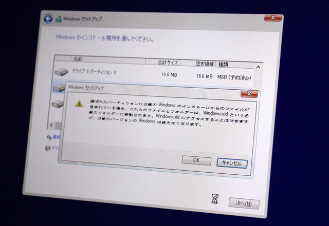注意を促すダイアログが表示されるので、OKを押して次へ進みます。
